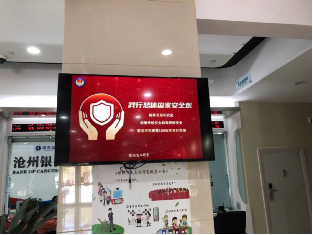 在行内设立宣传台,通过LED显示屏滚动播放,丰富法治宣传形式,积极推进法治文化建设。